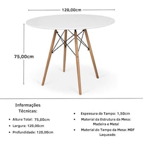 Ideal para espaços grandes, a Mesa Eiffel Redonda oferece uma solução inteligente para otimizar o espaço sem comprometer o estilo ou a funcionalidade. Construído com materiais de alta qualidade, a Mesa Eiffel conta com seu tampo feito em MDF Laqueado e a sua estrutura em madeira, materiais que garantem alta durabilidade ao produto.