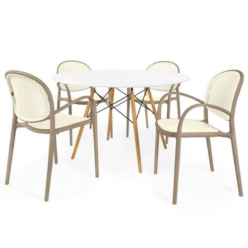 Conjunto Mesa de Jantar Redonda Eiffel 120cm com 4 Cadeiras Roma com Braço