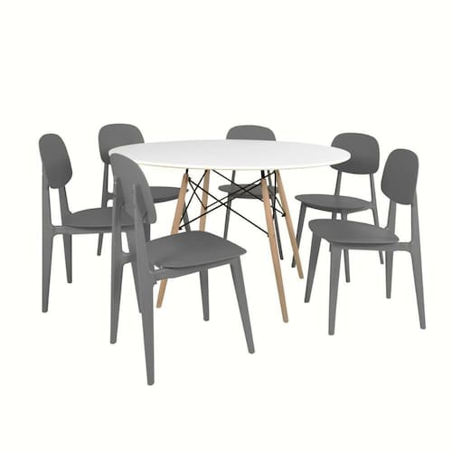 Conjunto Mesa de Jantar Redonda Eiffel Branca 120cm com 6 Cadeiras Itália