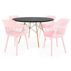 Cor: Rosa | Fabricante: Magazine Decor | Quantidade de Lugares: 4 | Peso do Produto: 50 | Largura: 100 | Produto: Mesa e Cadeiras | Altura: 75 | Tonalidade: Rosa | Tipo de Conjunto: Mesa e Cadeiras | Áreas Indicadas: Cozinha | Coleção Jardim: Não | Uso Indicado do Móvel: Mesa de Jantar | do modelo: 1 | Exige montagem: Sim | Baterias são necessárias?: Não | Certificação de teste externa: Não | Is Fragile: Não | de caixas: 2 | da peça: 1 | Peso do item: 50 | Principais Características do Produto (bullet_point#0): O Conjunto de Mesa de Jantar Redonda Eiffel com as Cadeiras Marcela, é uma escolha excepcional para quem busca unir estilo, praticidade e conforto em sua sala de jantar. | Principais Características do Produto (bullet_point#1): A Mesa de Jantar Eiffel, com dimensões de 120cm, é construída em MDF Laqueado de alta qualidade, garantindo durabilidade e facilidade de limpeza. | Principais Características do Produto (bullet_point#2): O visual moderno e minimalista da Cadeira Marcela adiciona um toque de elegância ao seu espaço. | Componentes incluídos: 1 Mesa + 4 Cadeiras | Quantidade de itens: 5 | Dimensões do item P x L x A: 75x100x100