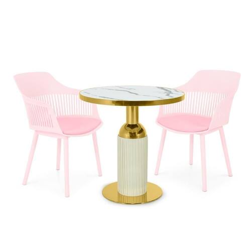 Cor: Rosa | Fabricante: Magazine Decor | Quantidade de Lugares: 2 | Peso do Produto: 35 | Largura: 70 | Produto: Mesa e Cadeiras | Altura: 73 | Tonalidade: Rosa | Tipo de Conjunto: Mesa e Cadeiras | Áreas Indicadas: Cozinhas | Coleção Jardim: Não | Uso Indicado do Móvel: Mesa de Jantar | do modelo: 1 | Exige montagem: Sim | Baterias são necessárias?: Não | Certificação de teste externa: Não | Is Fragile: Não | de caixas: 3 | da peça: 1 | Peso do item: 35 | Principais Características do Produto (bullet_point#0): Apresentamos o Conjunto Mesa de Jantar Redonda Imperial 70cm com 2 Cadeiras Estofadas Marcela, a combinação perfeita entre elegância, conforto e funcionalidade. | Principais Características do Produto (bullet_point#1): A mesa Imperial possui um tampo redondo de 70cm, proporcionando equilíbrio visual e praticidade no dia a dia. | Principais Características do Produto (bullet_point#2): As Cadeiras Marcela complementam o conjunto com design acolhedor e moderno. | Componentes incluídos: 1 Mesa + 2 Cadeiras | Quantidade de itens: 3 | Dimensões do item P x L x A: 73x100x100