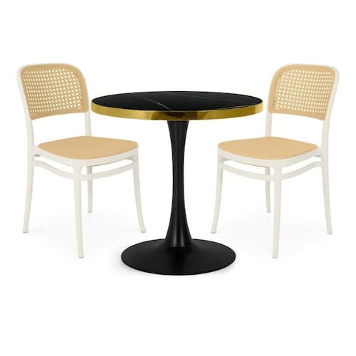 Cor: Branco | Fabricante: Magazine Decor | Quantidade de Lugares: 2 | Peso do Produto: 35 | Largura: 70 | Produto: Mesa e Cadeiras | Altura: 73 | Tonalidade: Branco | Tipo de Conjunto: Mesa e Cadeiras | Áreas Indicadas: Cozinhas | Coleção Jardim: Não | Uso Indicado do Móvel: Mesa de Jantar | do modelo: 1 | Exige montagem: Sim | Baterias são necessárias?: Não | Certificação de teste externa: Não | Is Fragile: Não | de caixas: 2 | da peça: 1 | Peso do item: 35 | Principais Características do Produto (bullet_point#0): Este conjunto de mesa e cadeira é a combinação perfeita entre elegância e funcionalidade, ideal para compor ambientes modernos e sofisticados. | Principais Características do Produto (bullet_point#1): A mesa apresenta um tampo em mármore sintético, que garante um visual sofisticado e resistente, sendo fácil de limpar e ideal para o uso diário. | Principais Características do Produto (bullet_point#2): As cadeiras que acompanham o conjunto são produzidas em 100% polipropileno, um material leve, resistente e de fácil manutenção. | Componentes incluídos: 1 Mesa + 2 Cadeiras | Quantidade de itens: 3 | Dimensões do item P x L x A: 73x100x100