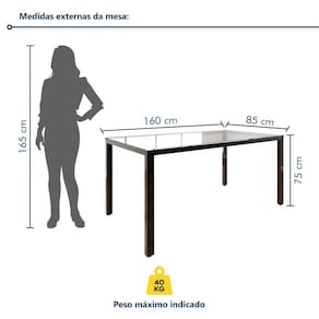 Qual é o benefício de uma cadeira com tratamento anti-Uva? O tratamento protege contra os raios solares que causam o desbotamento. Medida da Mesa (A x L x P): 75x160x85 Peso da Mesa: 27,5 kg Mesa suporta até: 40 kg Acabamento da Cadeira/Banco: Pintura Acabamento da Mesa: Pintura UV Ambiente Principal: Sala de Jantar Cadeira/Banco Estofada: Não Cadeira/Banco estofada: Não Cadeira/Banco suporta até: 120 kg codigo_ean: 7900288186232 Complexidade da Montagem: Média: pode ser montado por mais de uma pessoa e/ou necessite de maior conhecimento para montagem Cor: Preto Cor da Base: Preto Cor das Cadeiras: Preto Cor do Produto: Preto Cor Secundária: Cinza De Canto (Canto Alemão): Não Escala de Brilho: Semi-Brilho Espessura do Tampo: 8 mm Espessura do Vidro: 8 mm Estrutura do Assento: Polipropileno Formato do Tampo: Retangular Itens Inclusos: 1 Mesa, 6 Cadeiras, Kit Ferragens e Manual de Montagem Linha ou Coleção: Smart Manual de Montagem e Instalação: https://product-hub-prd.madeiramadeira.com.br/200394536/documents/706f4bdc-65d7-4c1d-8de0-ace7a895bb3830370417321751385989355.pdf Marca: Prima Design Material da Base da Mesa: Aço Carbono Material da Estrutura da Cadeira: Aço Carbono Material do Tampo: Vidro Medida da Cadeira/Banco (A x L x P): 81x47x53 Medida do Tampo (L x C x E): 160x85x28 Mesa Extensível: Não Necessita Montagem: Sim Origem do Produto: Nacional Peso da Cadeira/Banco: 3,6 kg Possui Apoio Para os Pés: Não Quantidade de Cadeiras: 6 Quantidade de Lugares: 06 Recomendações de Uso, Manutenção e Limpeza: A estrutura deve ser limpa utilizando pano seco de algodão ou flanela. Se necessário, utilize pano umedecido apenas com água, secando o móvel em seguida. Não utilize solvente, álcool, acetona, lustra móveis, produtos abrasivos e outros produtos que contenham soda e ou ácidos para limpar e tirar manchas dos móveis. Não expor os móveis à luz solar e ambientes com umidade relativa elevada. Manter a estrutura metálica limpa, utilizando pano seco ou cera a base de silicone. Sistema de Montagem: Parafusos Vidro Temperado: Sim Marca: Não Informado