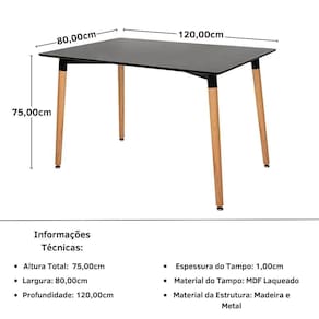 A Mesa de Jantar Eiffel, com dimensões de 120x80cm, é construída em MDF Laqueado de alta qualidade, garantindo durabilidade e facilidade de limpeza. Seu formato retangular é ideal para otimizar espaços, permitindo acomodar confortavelmente até quatro pessoas. Além disso, seus pés em estilo Eiffel acrescentam um toque de charme e personalidade ao ambiente.