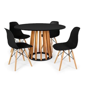 A Mesa Talia possui seu tampo feito totalmente em MDF BP e sua estrutura é feita em Madeira de Eucalipto. Já a Cadeira Eiffel possui seu assento fabricado em polipropileno e sua estrutura em madeira europeia, materiais que garantem qualidade e durabilidade ao produto.