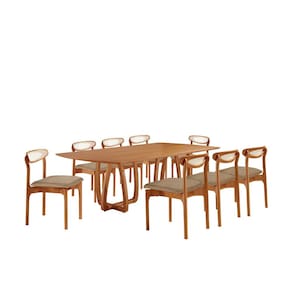Conjunto Mesa de Jantar Tampo 240cm Barril Laminado Ello e 8 Cadeiras Mônaco Premium Cinamomo/Turim - Marrom