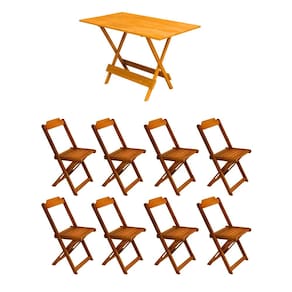 Conjunto Mesa de Madeira Dobravel 120x70 Castanho 8 Cadeiras - Marrom