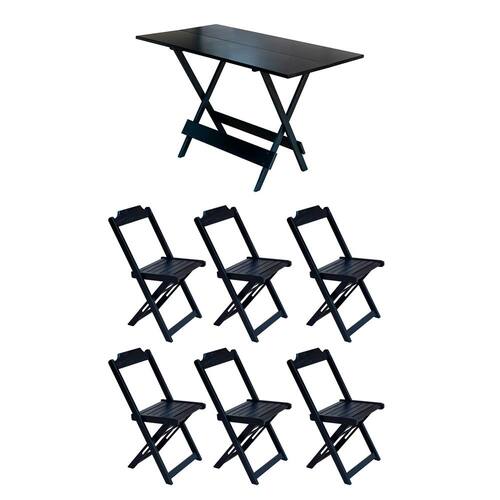 Conjunto Mesa De Madeira Dobravel 120x70 Preto 6 Cadeiras