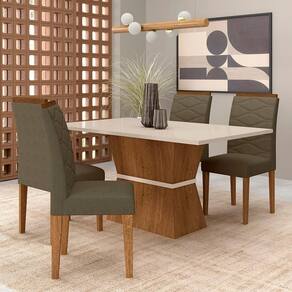 Conjunto Mesa Denali 4 Cadeiras Freijó/off/suede Capuccino - M.a - Marrom