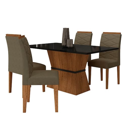 Conjunto Mesa Denali 4 Cadeiras Freijó/preto/suede Capuccino - M.a - Marrom