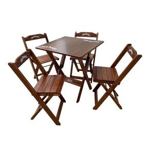 Conjunto Mesa Dobrável 60x60 Com 4 Cadeiras De Madeira Personalizada Hei Imbuia - Cor: Marrom