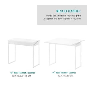 Medidas mesa aberta: Largura: 92 cm | Altura: 75 cm | Profundidade: 89 cm
