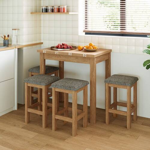 A mesa conta com sistema dobrável que permite ampliar ou reduzir o espaço conforme a necessidade, enquanto os bancos se encaixam perfeitamente sob a estrutura, garantindo organização e aproveitamento máximo da área. Os assentos estofados proporcionam mais conforto para o uso diário, seja em refeições rápidas ou momentos de convivência.