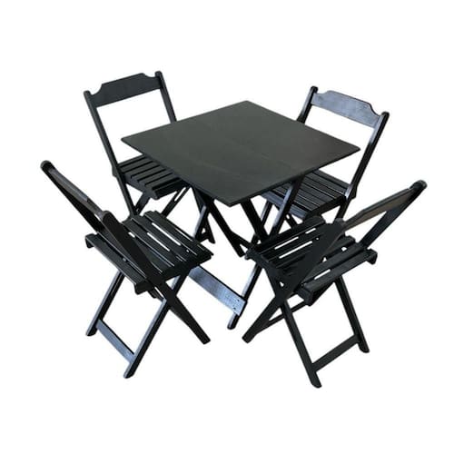 Conjunto Mesa Dobrável com Tampo em MDF Ultra Plus e 4 Cadeiras Dobráveis Preto -