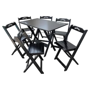 Conjunto Mesa Dobrável Madeira 110x70 Com 6 Cadeiras Personalizada Jack Preta - Tarimatã