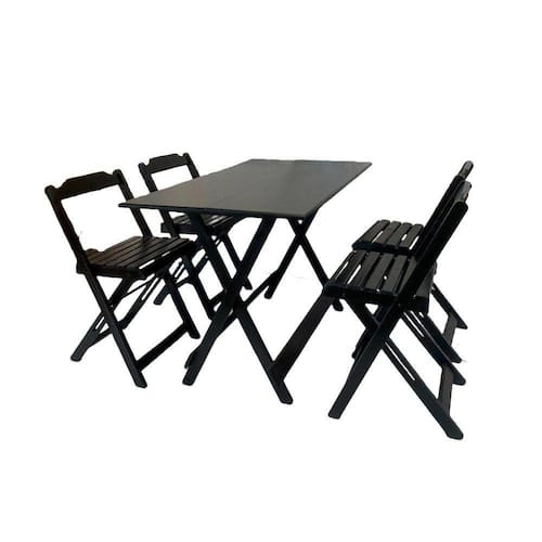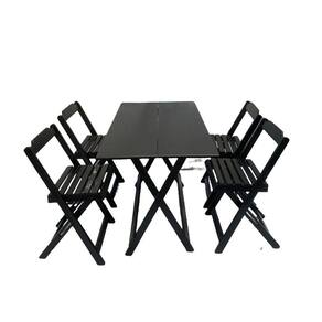 Conjunto Mesa Dobrável Madeira 120x70cm com 4 Cadeiras Preto -
