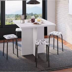 +Conjunto+de+mesa+Bona+Vita+%2C+toda+em+MDP%2C+com+4+mochos+em+tubo+preto%2C+estofados+em+floral+branco%2C+que+se+encaixam+embaixo+da+mesa%2C+ocupando+pouco+espa%E7o%2C+ideal+para+cozinha+ou+pequenos+ambientes.+Pr%E1tica+e+vers%E1til%2C+era+o+que+faltava+para+a+sua+mob%EDlia. Acabamento da Cadeira/Banco: Pintura Epóxi Acabamento da Mesa: Pintura UV Almofada do assento: Fixa Cadeira/Banco estofada: Sim Cadeira/Banco suporta até: 80 kg Complexidade da Montagem: Baixa: pode ser montado por uma pessoa sozinha Cr do Produto: Branco/Preto Enchimento do Assento: Espuma D-18 Escala de Brilho: Semi-Brilho Espessura do Tampo: 30 mm Estrutura do Assento: MDP 15mm Formato: Quadrado Itens Inclusos: 1 Mesa, 4 Bancos e Manual de Montagem. Linha ou Coleção: Verona Material da Base da Mesa: MDP Material da Estrutura da Cadeira: Aço Material do Tampo: MDP Medida da Base (A x L x P): 73,5cm x 56cm x 56cm Medida da Cadeira/Banco (A x L x P): 45cm x 25cm x 25cm Medida da Mesa (A x L x P): 73cm x 70cm x 70cm Medida do Tampo (L x C x E): 70cm x 70cm x 3cm Mesa suporta até: 80 kg Necessita Montagem: Sim Peso da Cadeira/Banco: 1 kg Peso da Mesa: 14 kg Possui Apoio para Braços: Não Possui Apoio Para os Pés: Não Possui Suporte Giratório: Não Quantidade de Lugares: 04 Recomendações de Uso, Manutenção e Limpeza: Limpar com pano umedecido e sabão neutro. Revestimento da Cadeira/Banco: Napa Sistema de Montagem: Parafusos, cavilha, cola, pregos, sapata e cantoneiras.