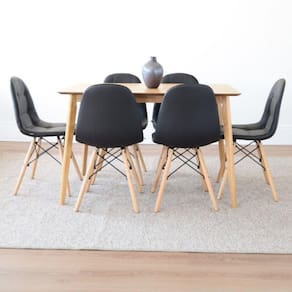 A Mesa Finlândia em madeira é ideal para quem busca elegância e praticidade, seu design rústico garante o detalhe que falta na decoração da sua casa. O conjunto com 6 cadeiras Eiffel Botonê completa o kit e garante o custo benefício para transformar o estilo divertido da sua casa com muita praticidade e toques de design. Conjunto composto por: uma Mesa com tampo em MDF de 19 mm, base em madeira seringueira + 6 cadeiras com assento revestido em PU, Base em madeira faia com armação em aço pintado. Suporta Até (kg): 120 kg Possui Rodízio: Não Altura do Conjunto: 82 cm Ambiente: null Ambiente Principal: Sala de Jantar Cor: Preto/Marroml Informação Complementar: 1x Mesa de Jantar Retangular Finlândia MarromlLargura: 120 cmAltura: 75 cmPeso: 19 kgNecessita Montagem: Sim1x Conjunto 6 Cadeiras Botone Eiffel PretoLargura: 45 cmAltura: 82 cmPeso: 4,1 kgProfundidade: 50 cmNecessita Montagem: Sim Tamanho: