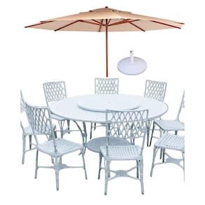 Mesa Giratória: Com um design inovador e elegante, a mesa giratória oferece praticidade e interação durante as refeições, permitindo que todos tenham fácil acesso a pratos e bebidas. Sua estrutura em alumínio fundido garante resistência e durabilidade, mesmo nas condições mais exigentes.