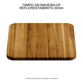 Tampo em madeira maciça de reflorestamento, pode haver variação de tonalidades e veios.