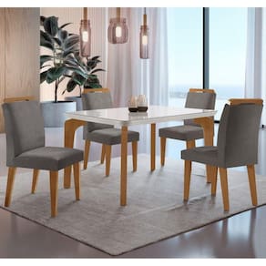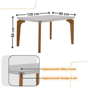 Conjunto Sala de Jantar Mesa Liz 120cm com Vidro Canto Copo e 4 Cadeiras Athenas Moderna