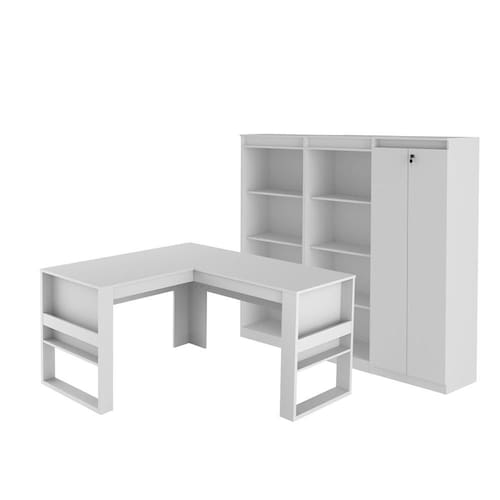 Conjunto Mesa para Computador com 4 Armários para Escritório Branco - Tecnomobili