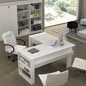 O(a) Mesa Escritório Angular ME4145 Branco - Tecnomobili é produzido em MDP 15mm. Seu revestimento/acabamento é: BP