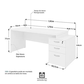Dimensões da Mesa Pedestal 3 Gavetas: