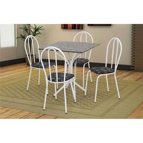 Pequeno, compacto e perfeito. Essas são algumas definições para o Conjunto de Mesas com 4 Cadeiras Thais, da Artefamol. Com tampo em granito, a qualidade e durabilidade está garantida. A estrutura da mesa e das cadeiras são feitas em aço-carbono, esse material consegue oferecer a resistência e durabilidade que só o aço pode proporcionar. As estruturas contam com o revestimento em pintura eletrostática a pó, isso quer dizer proteção contra a ação do tempo. Como se isso não bastasse, todas as soldas são realizadas com tecnologia da indústria automobilística, assegurando a alta qualidade do produto. Além disso, as 4 cadeiras possuem revestimento em courvin, deixando o conjunto com um toque de delicadeza ao ambiente.