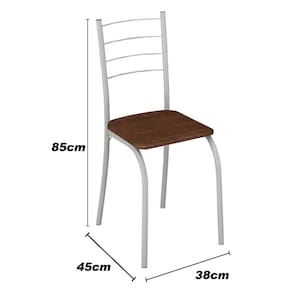 O conjunto Minas, com 04 cadeiras, tem sua estrutura em aço carbono, pintura epóxi, tampo em MDF-BP, garante maior resistência e qualidade, sem perder a sofisticação do produto. Você poderá utilizar este produto em vários ambientes, como: cozinha, áreas de lazer entre outros, uma infinidade de combinações, é garantia de satisfação! Acabamento da Cadeira/Banco: Pintura Epóxi Acabamento da Mesa: Pintura Poliéster Almofada do assento: Fixa Ambiente Principal: Cozinha Cadeira/Banco estofada: Não Cadeira/Banco suporta até: 100 kg Complexidade da Montagem: Baixa: pode ser montado por uma pessoa sozinha Cor: Branco/Marrom/Imbuia Cor do Produto: Branco/Marrom/Imbuia Cor Predominante: Branco Escala de Brilho: Brilhante Espessura do Tampo: 15 mm Estrutura do Assento: Compensado 9mm, Espuma D-16, Courino Itens Inclusos: 1 Conjunto, Kit Ferragens e Manual de Montagem Linha ou Coleção: Minas Manual de Montagem e Instalação: https://cdn2.madeiramadeira.com.br/atributo/moveis-teixeira/787710-esquema-montagem-conj-minas.pdf Material da Base da Mesa: Aço Material da Estrutura da Cadeira: Aço Medida da Base (A x L x P): 74cmx62cmx62cm Medida da Cadeira/Banco (A x L x P): 85cmx37,5cmx41,5cm Medida da Mesa (A x L x P): 75,5cmx68cmx68cm Medida do Tampo (L x C x E): 68cmx68cmx1,5cm Mesa suporta até: 12 kg Necessita Montagem: Sim Origem do Produto: Nacional Peso da Cadeira/Banco: 2,46 kg Peso da Mesa: 6,203 kg Possui Apoio para Braços: Não Possui Apoio Para os Pés: Não Recomendações de Uso, Manutenção e Limpeza: Limpeza com pano macio e basicamente seco, não utilizar material aspero. Não ultilizar solventes a base de inflamáveis. Sistema de Montagem: Parafusos Tamanho: