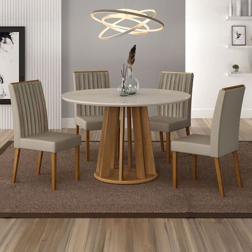 O conjunto Mari é a escolha ideal para quem valoriza espaço e conforto. Com uma mesa espaçosa, esta configuração permite que você receba seus convidados com comodidade, proporcionando momentos memoráveis à mesa. As seis cadeiras complementam o conjunto, oferecendo conforto ergonômico e design elegante. Seja para jantares em família ou reuniões animadas, o conjunto Mari promete uma experiência gastronômica inesquecível em um ambiente acolhedor e convidativo. Medida da Mesa (A x L x P): 78cmx120cmx120cm Peso da Mesa: 46 kg Mesa suporta até: 40 kg Acabamento da Cadeira/Banco: Pintura UV Acabamento da Mesa: Pintura UV Acompanha Manual de Instalação: Sim Almofada do assento: Fixa Almofada do encosto: Fixa Ambiente Principal: Sala de Jantar Cadeira/Banco estofada: Sim Cadeira/Banco Suporta Até: 120.0000 Cadeira/Banco suporta até: 120 kg codigo_ean: 7900288262233 Complexidade da Montagem: Média: pode ser montado por mais de uma pessoa e/ou necessite de maior conhecimento para montagem Configuração do Conjunto: Mesa com Cadeiras Cor: Cinamomo/Off White/Bege Cor da Base: Marrom Cor do Produto: Cinamomo/Off White/Bege Enchimento do Assento: Espuma D-23 Enchimento do Encosto: Espuma D-18 Escala de Brilho: Fosco Espessura do Tampo: 4 mm Estrutura do Assento: Madeira Itens Inclusos: 1 Mesa, 4 Cadeiras, Kit Ferragens e Manual de Montagem Linha ou Coleção: Rose Manual de Montagem e Instalação: https://product-hub-prd.madeiramadeira.com.br/891920/documents/9a6bb69b-c54a-462d-9aa9-2c96c22ceca03248806554117592358887388.pdf Marca: Valdemóveis Material da Base da Mesa: MDF/MDP Material da Estrutura da Cadeira: Madeira Maciça Material do Tampo: Vidro Material Principal: MDF/MDP Medida da Cadeira/Banco (A x L x P): 94,5cmx45cmx60cm Medida do Tampo (L x C x E): 78cmx120cmx2,5cm Mesa Dobrável: Não Mesa Extensível: Não Necessita Montagem: Sim Origem do Produto: Nacional Peso da Cadeira/Banco: 36 kg Possui Apoio para Braços: Não Possui Apoio Para os Pés: Não Possui Prateleiras: Não Possui Suporte Giratório: Não Possui Vidro: Sim Quantidade de Cadeiras: 4 Quantidade de Lugares: 04 Recomendações de Uso, Manutenção e Limpeza: Para limpeza utilizar apenas um pano úmido. Revestimento da Cadeira/Banco: Veludo Sistema de Montagem: Parafusos Tipo de Assento: Fixo Tipo de Encosto: Fixo Vidro Temperado: Sim