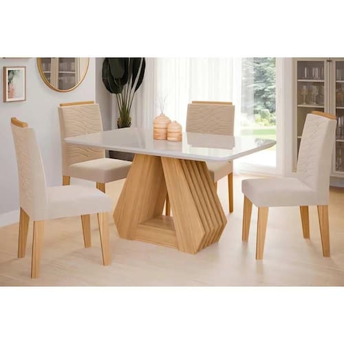 Sala de Jantar Completa Ágata Tampo Madeirado c/ Vidro 130x80cm e 4 Cadeiras Clarice Savana-Nature-Madeirado/Suede Nude Bege - Cimol Abaixo segue os produtos do KIT: Sala de Jantar Completa Ágata Tampo Madeirado c/ Vidro 130x80cm e 4 Cadeiras Clarice Savana-Nature-Madeirado/Suede Nude Bege - Cimol