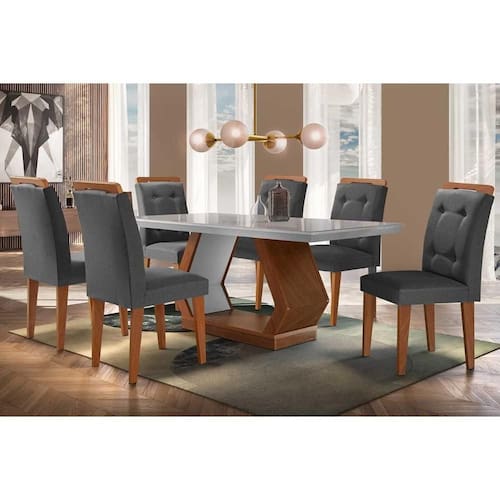 Sala de Jantar Completa Alvorada Tampo Madeirado c/ Vidro Canto Reto 180x90cm e 6 Cadeiras Imperatriz Imbuia/Off White - Linho Grafite - Rufato Abaixo segue os produtos do KIT: Sala de Jantar Completa Alvorada Tampo Madeirado c/ Vidro Canto Reto 180x90cm e 6 Cadeiras Imperatriz Imbuia/Off White - Linho Grafite - Rufato