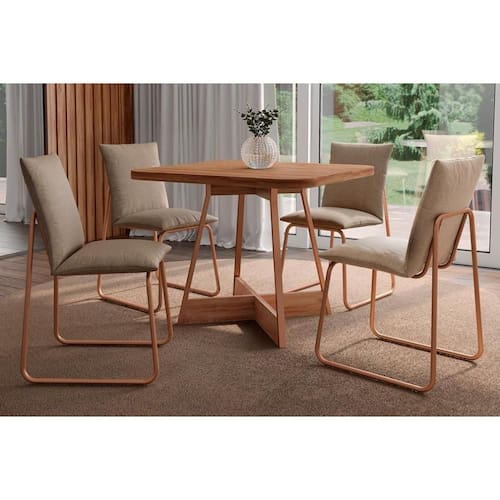 Sala de Jantar Completa Átria 1593 Aço c/ Tampo Madeirado 90x90cm e 4 Cadeiras Soft Rose/Freijó/Nogal - Rose/Areia - Carraro
