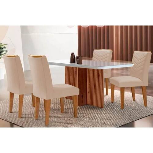 Cadeira Sala de Jantar Londrina Kit 2 Un Madeira Capuccino/Suede Creme - Rufato