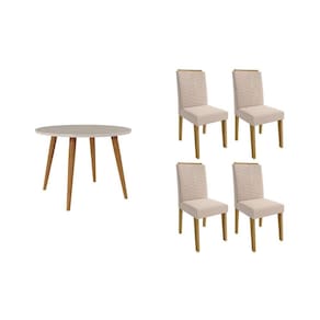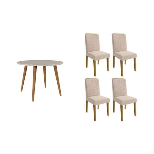 Sala de Jantar Completa Dani c/ Tampo Madeirado c/ Vidro 110cm e 4 Cadeiras Clarice Nature/Suede Nude Bege - Cimol