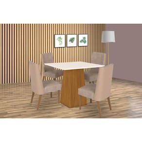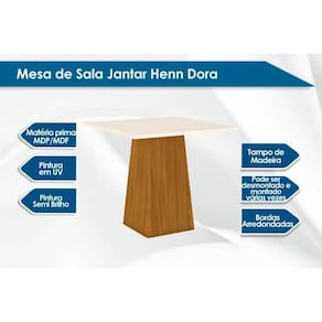 Sala de Jantar Completa Dora Tampo Madeirado 90x90cm e 4 Cadeiras Anne Nature/Courano/Creme - Henn Abaixo segue os produtos do KIT: Sala de Jantar Completa Dora Tampo Madeirado 90x90cm e 4 Cadeiras Anne Nature/Courano/Creme - Henn