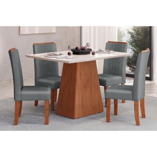 Sala de Jantar Completa Dulce Tampo Madeirado c/ Vidro Reto 180x90cm e 4 Cadeiras Zoe Freijo/Off White - Suede Lunar - DJ Móveis Abaixo segue os produtos do KIT: Sala de Jantar Completa Dulce Tampo Madeirado c/ Vidro Reto 180x90cm e 4 Cadeiras Zoe Freijo/Off White - Suede Lunar - DJ Móveis