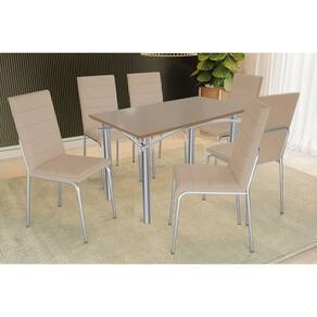 Sala de Jantar Completa Elba Tampo Madeirado c/ Vidro 120cm e 6 Cadeiras Amsterdã Cromada/Freijo Bronze - Courano Bege - Kappesberg Abaixo segue os produtos do KIT: Sala de Jantar Completa Elba Tampo Madeirado c/ Vidro 120cm e 6 Cadeiras Amsterdã Cromada/Freijo Bronze - Courano Bege - Kappesberg