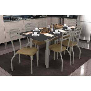 Sala de Jantar Completa Elba Tampo Madeirado c/ Vidro 160cm e 6 Cadeiras Portugal Niquel/Preto - Courano Capuccino - Kappesberg Abaixo segue os produtos do KIT: Sala de Jantar Completa Elba Tampo Madeirado c/ Vidro 160cm e 6 Cadeiras Portugal Niquel/Preto - Courano Capuccino - Kappesberg