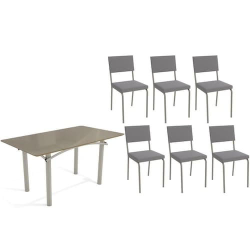 Sala de Jantar Completa Elba Tampo Madeirado c/ Vidro 160cm e 6 Cadeiras Zaria Niquel/Freijo Bronze - Suede Cinza - Kappesberg Abaixo segue os produtos do KIT: Sala de Jantar Completa Elba Tampo Madeirado c/ Vidro 160cm e 6 Cadeiras Zaria Niquel/Freijo Bronze - Suede Cinza - Kappesberg