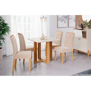 Sala de Jantar Completa Flora c/ Tampo Madeirado 95cm + 4 Cadeiras Fernanda Nature/OW/Nude - Cimol Marca: Cimol