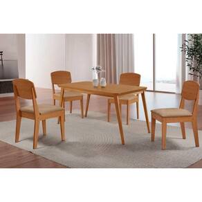 Sala Jantar Mesa Havana Curvo 120cm + 4 Cadeiras Havana Naturale - Linho Bege - Rufato