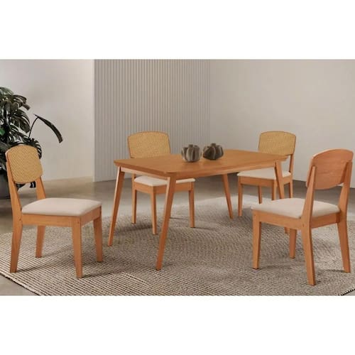 Sala Jantar Mesa Havana Tampo Curvo 120cm+4 Cadeiras Havana Naturale - Suede Creme - Rufato