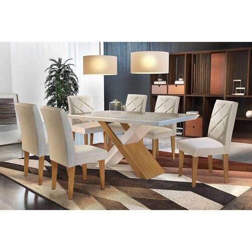 Conjunto: Mesa Sala Jantar Imperatriz Tampo Madeirado 180cm Canto Reto + 6 Cadeiras Berlim Imbuia/Creme - Rufato Abaixo segue os produtos do KIT: Conjunto: Mesa Sala Jantar Imperatriz Tampo Madeirado 180cm Canto Reto + 6 Cadeiras Berlim Imbuia/Creme - Rufato