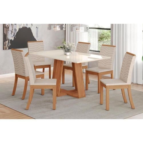 Sala de Jantar Completa Lins SC91 Tampo Madeirado c/ Vidro Canto Reto 120x80cm e 6 Cadeiras Isa Nature/Linho - Henn Abaixo segue os produtos do KIT: Sala de Jantar Completa Lins SC91 Tampo Madeirado c/ Vidro Canto Reto 120x80cm e 6 Cadeiras Isa Nature/Linho - Henn Mesa de Sala Jantar Lins SC90 c/ Tampo Madeirado c/ Vidro Reto 120x80cm Nature/Off White - Henn