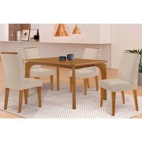 Mesa: Estrutura em MDF, Tampo em MDF com Vidro Temperado, Pés de Madeira. Cadeira: Estrutura em MDF, Assento e Encosto Estofados.Vendido e entregue por Costa Rica Colchões