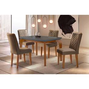 Sala de Jantar Completa Londrina c/ Tampo Madeirado c/ Vidro Canto Curvo 120x80cm e 4 cadeiras Jade Imbuia/Grafite - Suede Capuccino - Rufato