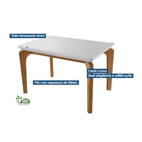 Dimensões(Cm): Mesa Jantar Londrina c/ Tampo MDF/Vidro 120cm