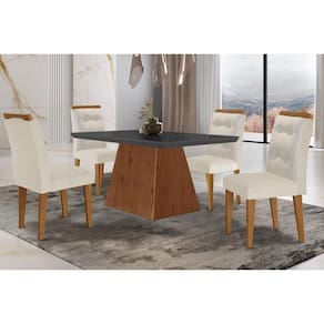 Abaixo segue os produtos do KIT: Sala de Jantar Completa Luna c/ Tampo Madeirado c/ Vidro Canto Curvo 120x80cm e 4 cadeiras Imperatriz Imbuia/Grafite - Suede Creme - Rufato